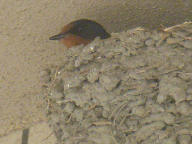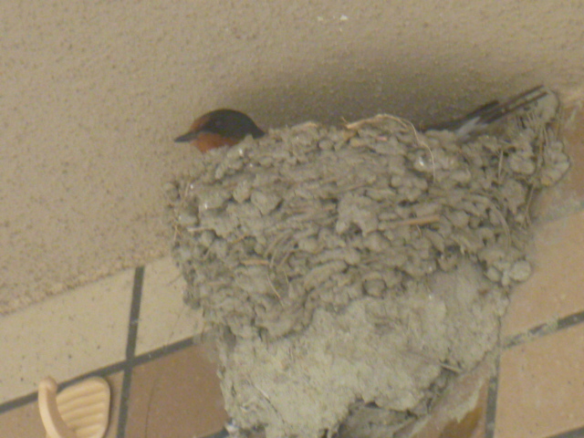 お母さん燕が卵を今、温めているところです。