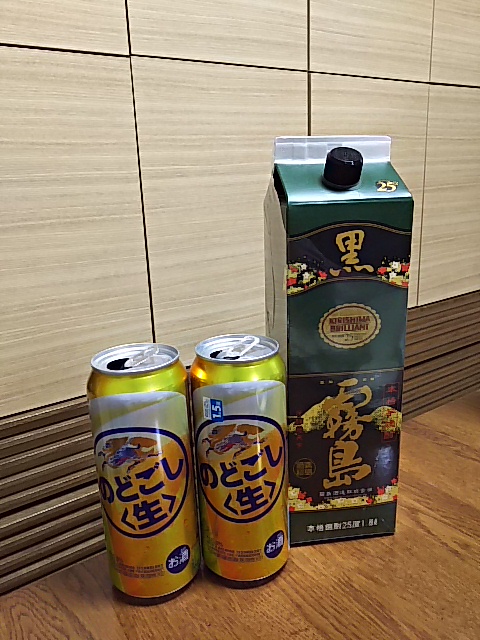 今日は、黒霧島ロックに、のどごし生。