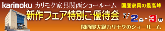 7/2〜3の2日間でカリモク家具関西ショールームにて“新作フェア”を開催します。